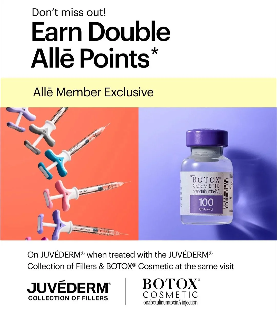 Earn double points when you get treated with both Botox and Juvederm fillers from 2/4 through 4/2.